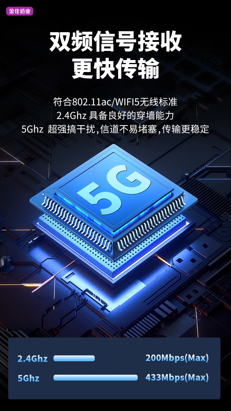 傳輸速率:2.4G:200Mpbs 5G:433Mpbs