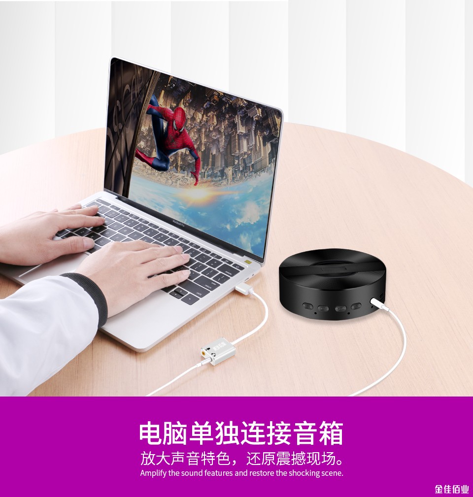 悅動音效、可以將平板、臺式機、筆記本的USB接口輸出的模擬信號轉化為數(shù)字信號,虛擬立體雙聲道音效輸出