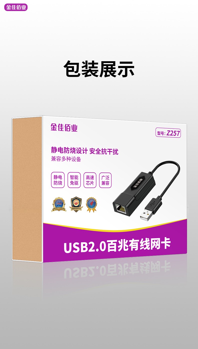 3. 標準RJ45接口、支持10/100Mbps網絡速率
