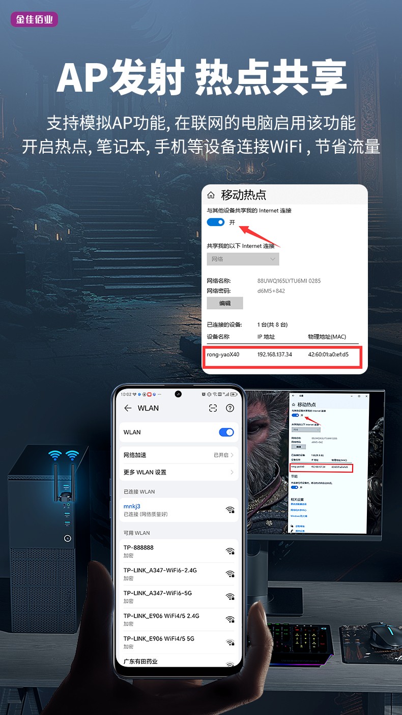 免驅(qū)安裝/AP發(fā)射 熱點共享/多重加密