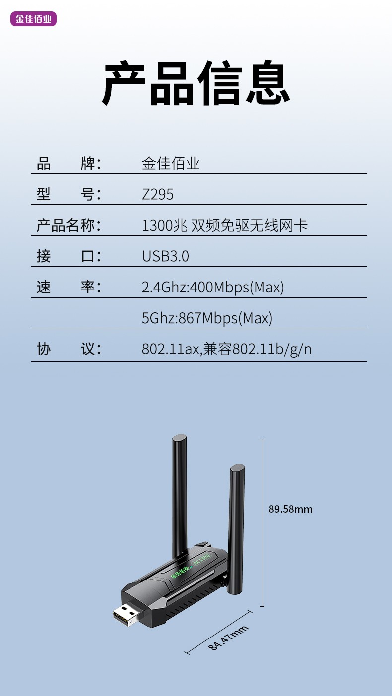 支持頻段:雙頻2.4G+5G