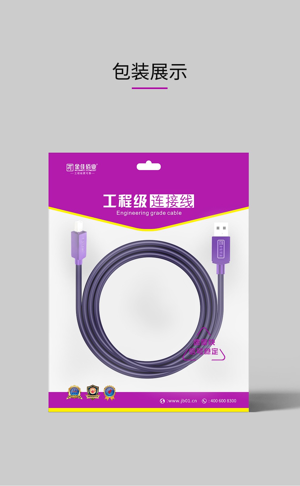 ?1.AM/BM 打印線 2.鍍錫無氧銅線芯,數據線對絞,信號傳輸更穩定3.線材采用鋁箔,編織網雙層屏蔽,環保膠料 4.線規24/28AWG OD5.0