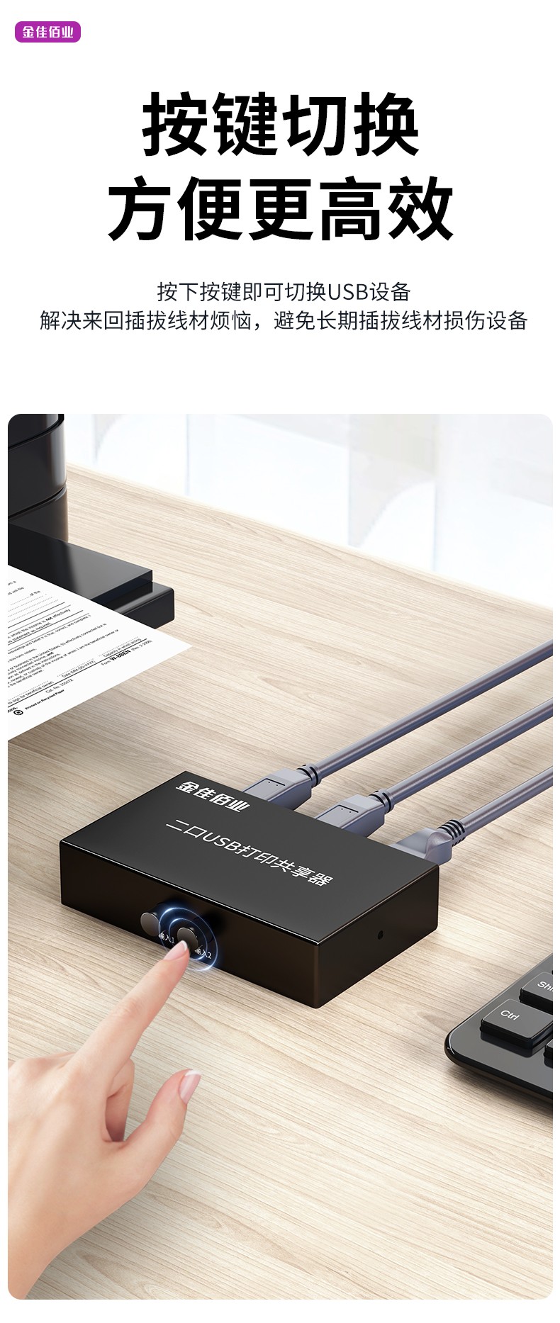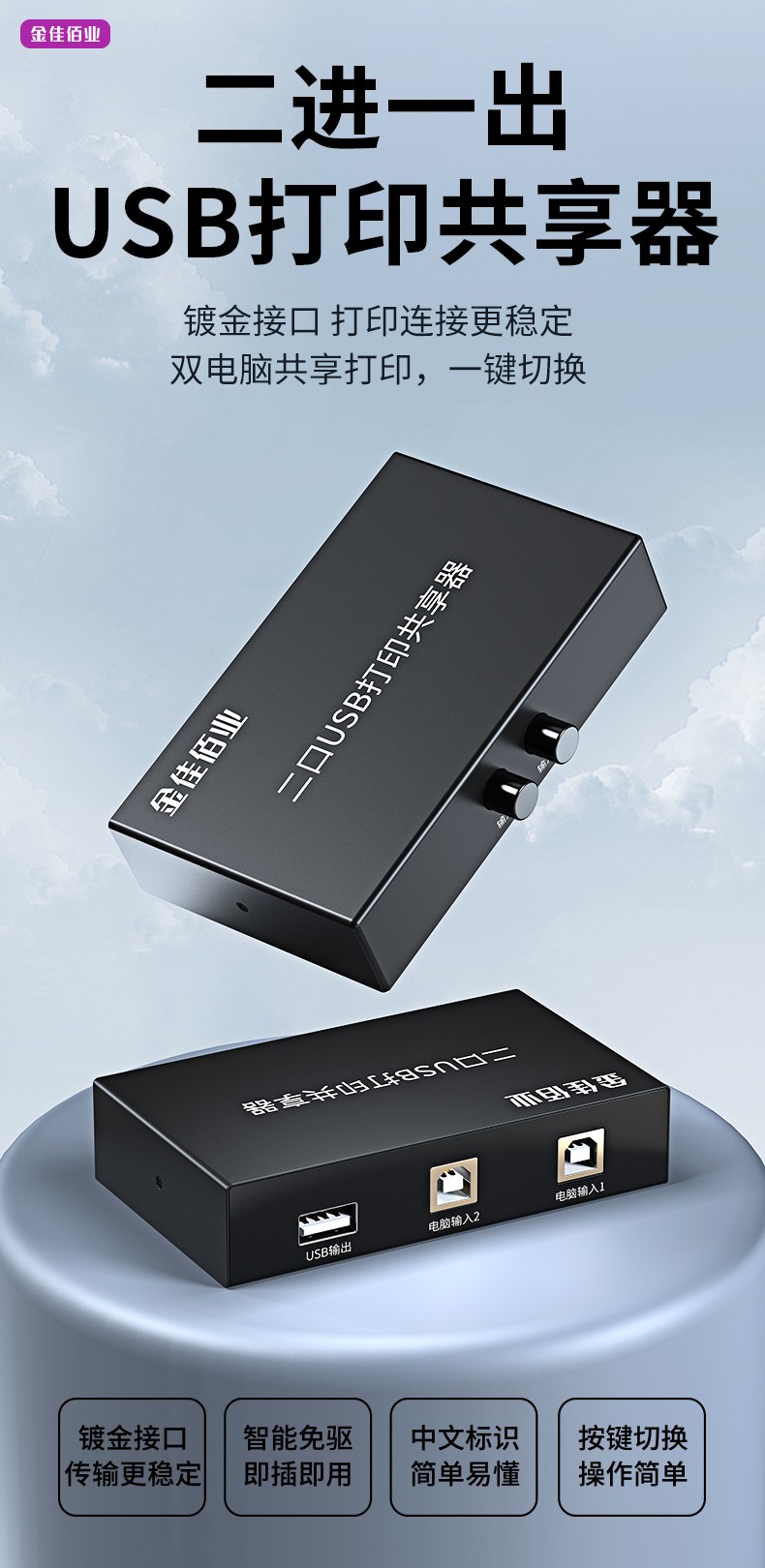 支持兩臺電腦同時連接一臺打印機,一鍵切換共享打印