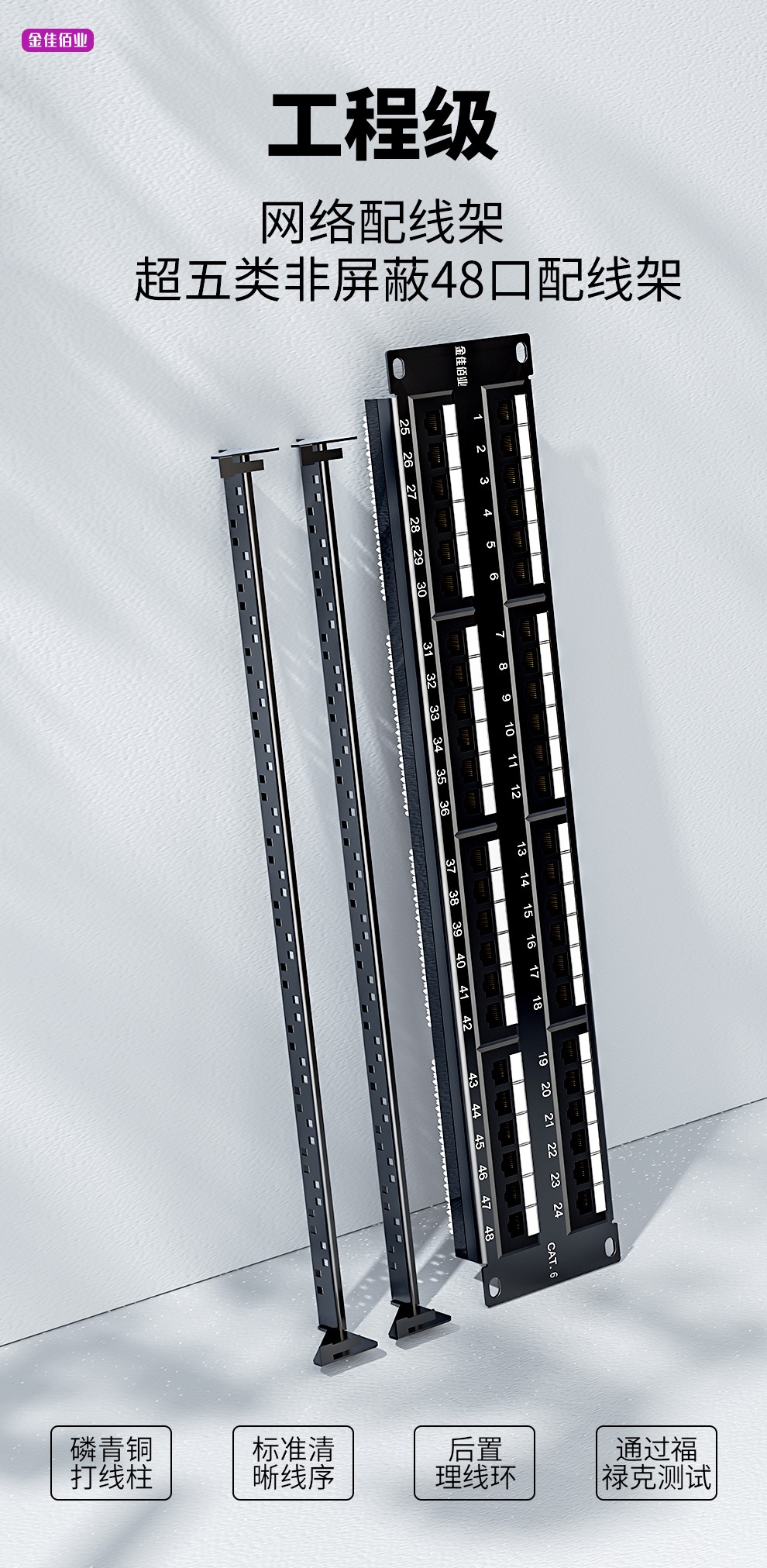 標準線序,所有插座都具備T568A和T568B兩種線序,適用所有19英寸標準機柜,后置理線環