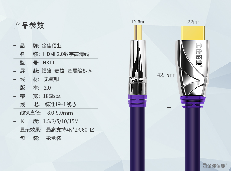 HDMI高清線的市場前景,讓很多商家都嗅到了其中的肉味,紛紛涌入其中,市場上的HDMI高清線質量也是參差不齊,如果不懂怎么挑選HDMI高清線,很有可能會出現既沒有享受到高清視頻的美好體驗,還破壞了電視機的HDMI傳輸接口這種情況,今天金佳佰業就來給大家講解一下怎么挑選一根優質的HDMI高清線。