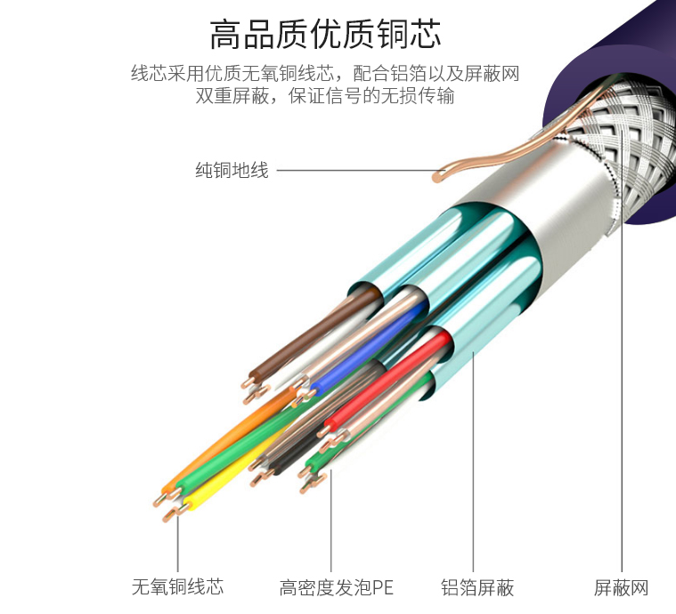 HDMI線的傳輸能力是其本身最重要的性能。普通銅材質HDMI線會受到長度和傳輸能力的限制,為了保證傳輸穩定,目前市場上有光纖材質的HDMI線材,但是價格昂貴,除非專業性需求的用戶可以考慮。現在可以采用19根34AWG線規加多股鍍錫銅芯來編織,不用擔心長度帶來的衰減和外界的干擾,解決長距離傳輸。