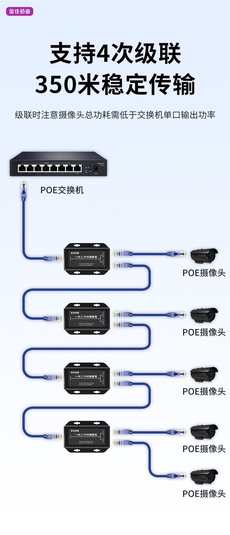 注:級(jí)聯(lián)時(shí)攝像頭功耗總和需低于交換機(jī)單口輸出功率