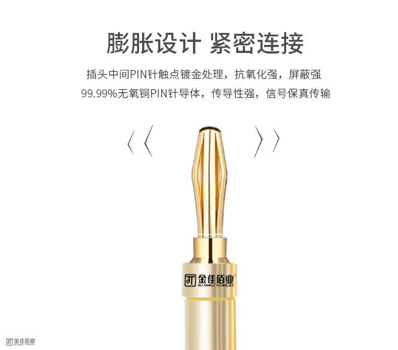 2. 99.99%無(wú)氧銅PIN針導(dǎo)體,傳導(dǎo)性強(qiáng)免焊接,高保真信號(hào),膨脹設(shè)計(jì),結(jié)構(gòu)更穩(wěn)固,抗氧化,耐插拔